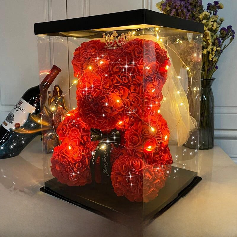 Our rose bears and eternal flowers are designed to last indefinitely when properly cared for. Rose bears maintain their beauty for years, while eternal flowers are preserved to maintain their vibrant appearance. Store them in a cool, dry place away from direct sunlight to ensure they remain as stunning as the day you received them.